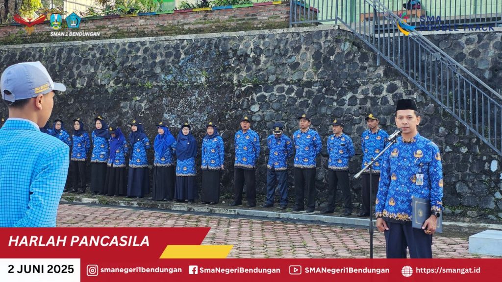 Hari ini, seluruh warga SMAN 1 Bendungan Trenggalek (SMANGAT) melaksanakan Upacara Peringatan Hari Lahir Pancasila dengan penuh khidmat, tertib, dan sarat makna. Upacara ini bukan sekadar agenda rutin tahunan, tetapi menjadi momentum refleksi dan penyadaran bahwa nilai-nilai luhur Pancasila harus senantiasa hidup dalam denyut nadi kehidupan kita—di ruang belajar, di tengah keluarga, dan di masyarakat.